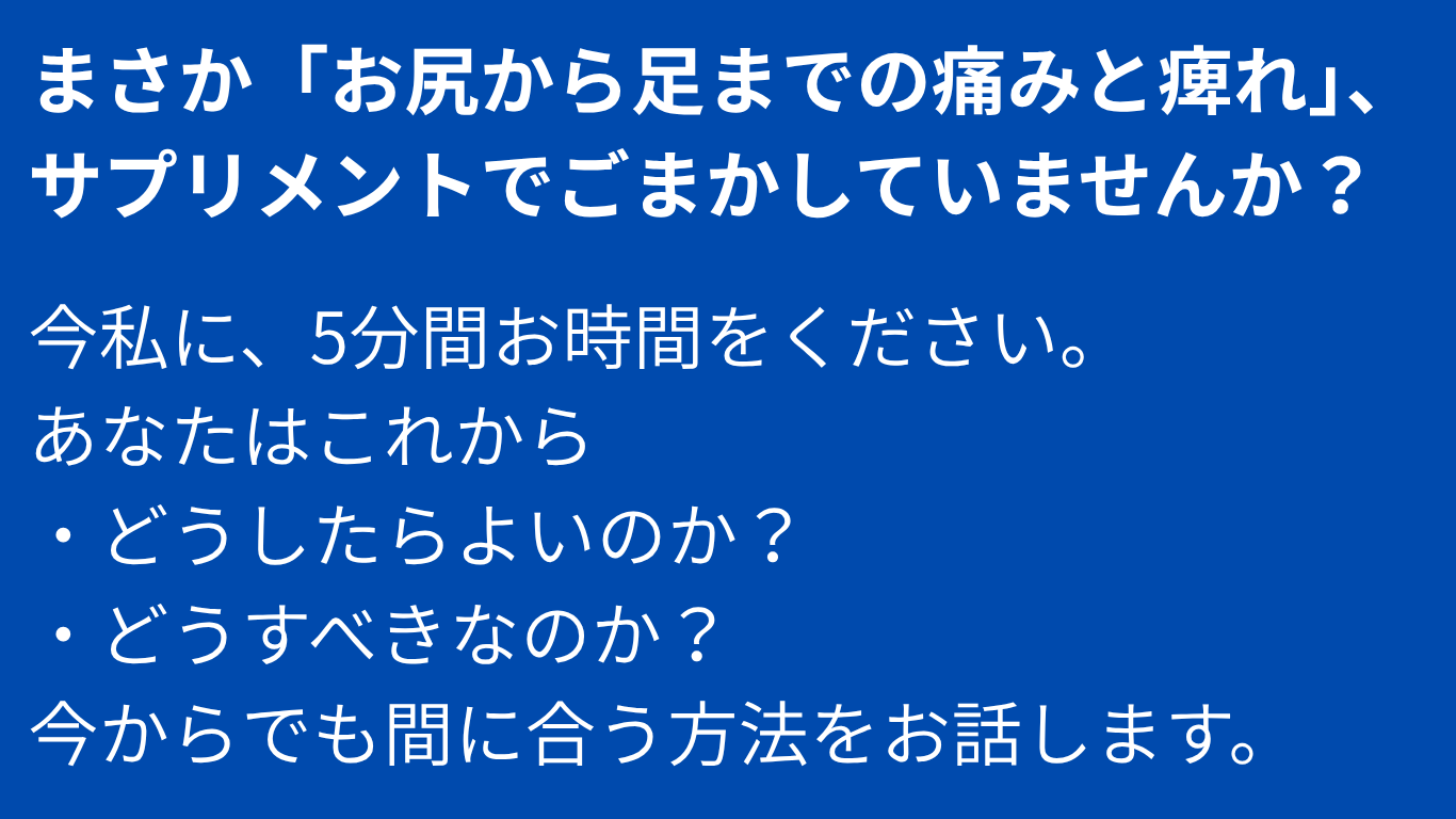 病院で十分です。でも、もし病院で「異常なし」「様子をみましょう」と言われ、湿布、サプリメントで誤魔化す日々に疲れたなら、私を頼ってください。